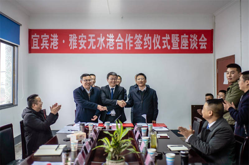 在簽約儀式上,雅安交建集團(tuán)、四川宜賓港集團(tuán)、中鐵聯(lián)集成都分公司共同簽署三方戰(zhàn)略合作協(xié)議,三方就“公、水、鐵”多式聯(lián)運(yùn)以及倉儲運(yùn)輸、甩掛運(yùn)輸、集裝箱運(yùn)輸、城市配送、零擔(dān)運(yùn)輸?shù)榷喾N業(yè)務(wù)開展深度合作。四川宜賓港集團(tuán)還分別和雅化實業(yè)集團(tuán)、寶興漢白玉石材協(xié)會、蘆山縣紡織協(xié)會等企業(yè)、協(xié)會進(jìn)行了戰(zhàn)略合作簽約。通過借助宜賓港·雅安無水港幫助本地企業(yè)打通外向通道,降低物流運(yùn)輸成本,改善物流運(yùn)輸體系。