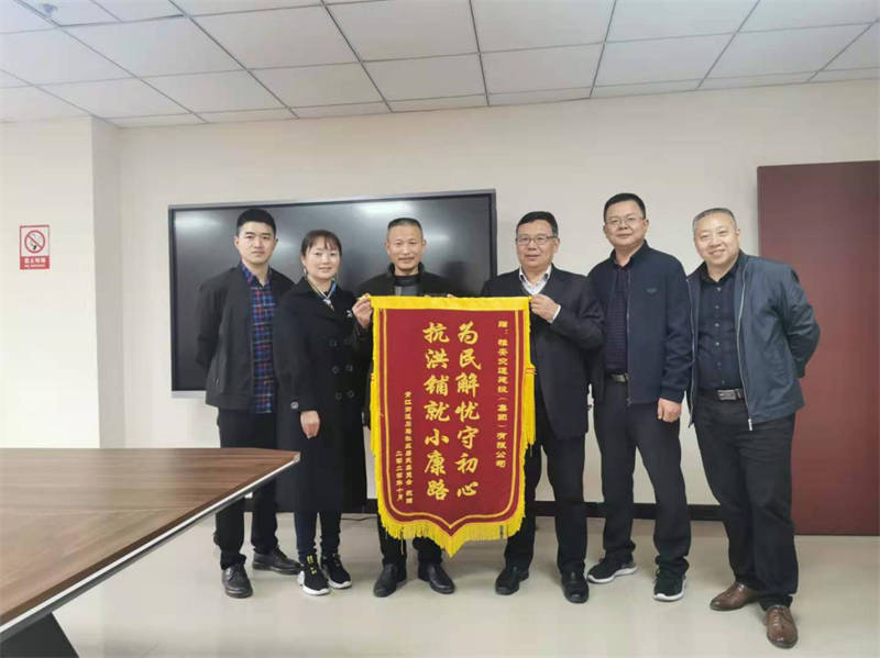 11月10日,雨城區(qū)青江街道石馬社區(qū)黨委書記楊述全、主任張世霞專程來到雅安交建集團(tuán),代表石馬社區(qū)群眾將寫有“為民解憂守初心·抗洪鋪就小康路”的錦旗贈(zèng)送到交建集團(tuán)黨委書記、董事長(zhǎng)漆家華手中,為在今年8月抗洪搶險(xiǎn)救災(zāi)中交建集團(tuán)對(duì)石馬社區(qū)給予的支持和幫助表示感謝。
