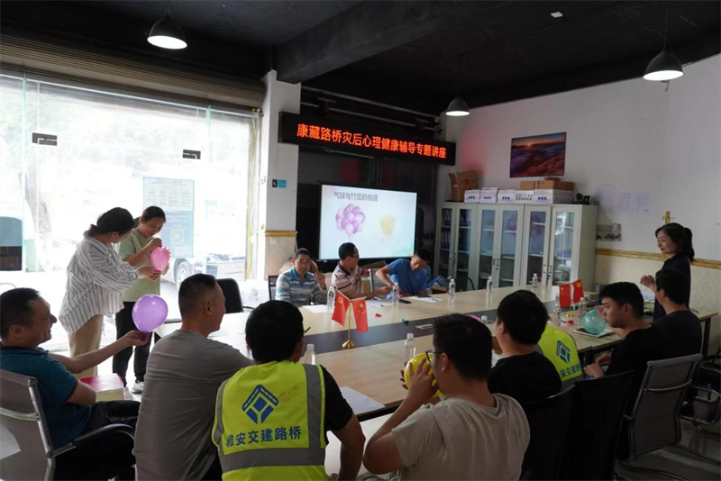 地震無情人有情。當(dāng)前,蘆山“6.1”地震抗震救災(zāi)已轉(zhuǎn)入災(zāi)后恢復(fù)重建階段,為進(jìn)一步強(qiáng)化員工心理素質(zhì),促進(jìn)心理韌性提升,更好地?fù)?dān)起災(zāi)后重建重任,6月17日,四川康藏路橋有限責(zé)任公司特邀雅安中學(xué)專職心理教師左月在寶興分公司開展“情緒調(diào)節(jié)與心理減壓”心理健康專題講座,對(duì)堅(jiān)守在抗震救災(zāi)和災(zāi)后恢復(fù)重建一線員工進(jìn)行心理健康知識(shí)宣傳和情緒疏導(dǎo)。