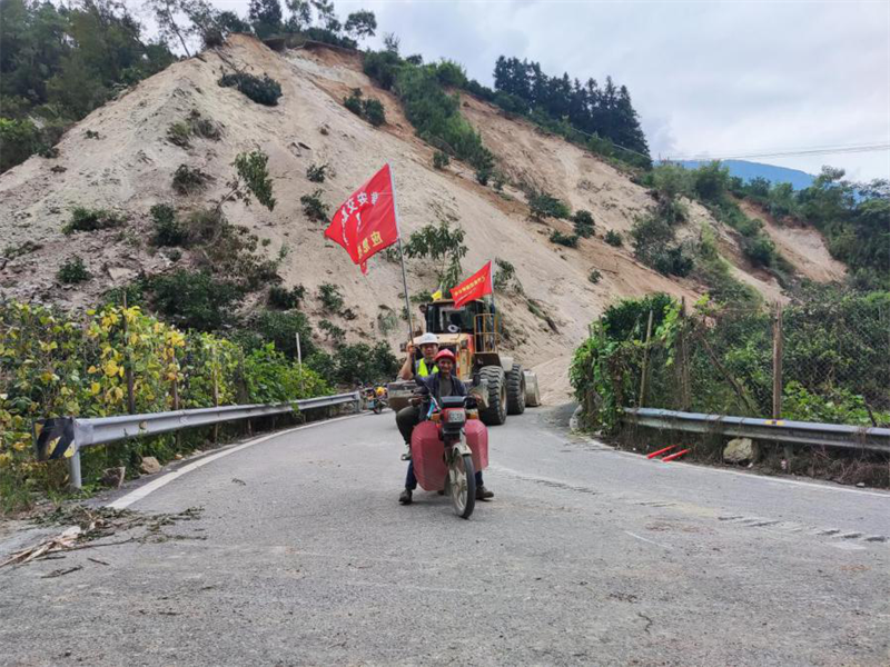 9月5日,項(xiàng)目經(jīng)理吳學(xué)林同志帶領(lǐng)突擊隊(duì)率先抵達(dá)G108線菩薩崗。一次次余震攔不住他們的腳步,一聲聲哀嚎更堅(jiān)定了他們逆行的決心。在通訊受阻的情況下,緊急調(diào)配2臺(tái)挖掘機(jī)、1臺(tái)推土機(jī)自G108線又轉(zhuǎn)戰(zhàn)新民鄉(xiāng),在受災(zāi)嚴(yán)重的X067縣道開(kāi)展道路搶通以及救援工作。在搶險(xiǎn)一線,飛石及塌方的風(fēng)險(xiǎn)時(shí)刻危及著救災(zāi)人員的自身安全!耙欢ㄒ嘤^察!首先要保證自己的安全才能更好地完成搶險(xiǎn)工作!”項(xiàng)目經(jīng)理吳學(xué)林同志、項(xiàng)目工程部副部長(zhǎng)李健同志在轟鳴的搶險(xiǎn)現(xiàn)場(chǎng)喊破嗓子指揮著各類(lèi)機(jī)具搶險(xiǎn)作業(yè)。待通訊恢復(fù)后,吳學(xué)林同志一邊組織現(xiàn)場(chǎng)搶險(xiǎn),一邊實(shí)時(shí)逐級(jí)上報(bào)受災(zāi)和搶險(xiǎn)情況,與第一時(shí)間趕來(lái)的集團(tuán)公司和路橋公司現(xiàn)場(chǎng)指揮組,會(huì)商道路受阻情況,研究布置搶險(xiǎn)保通工作。緊接著,石棉項(xiàng)目部搶險(xiǎn)人員來(lái)不及片刻休息,馬不停蹄地投入到一處處塌方、受阻道路搶通中。