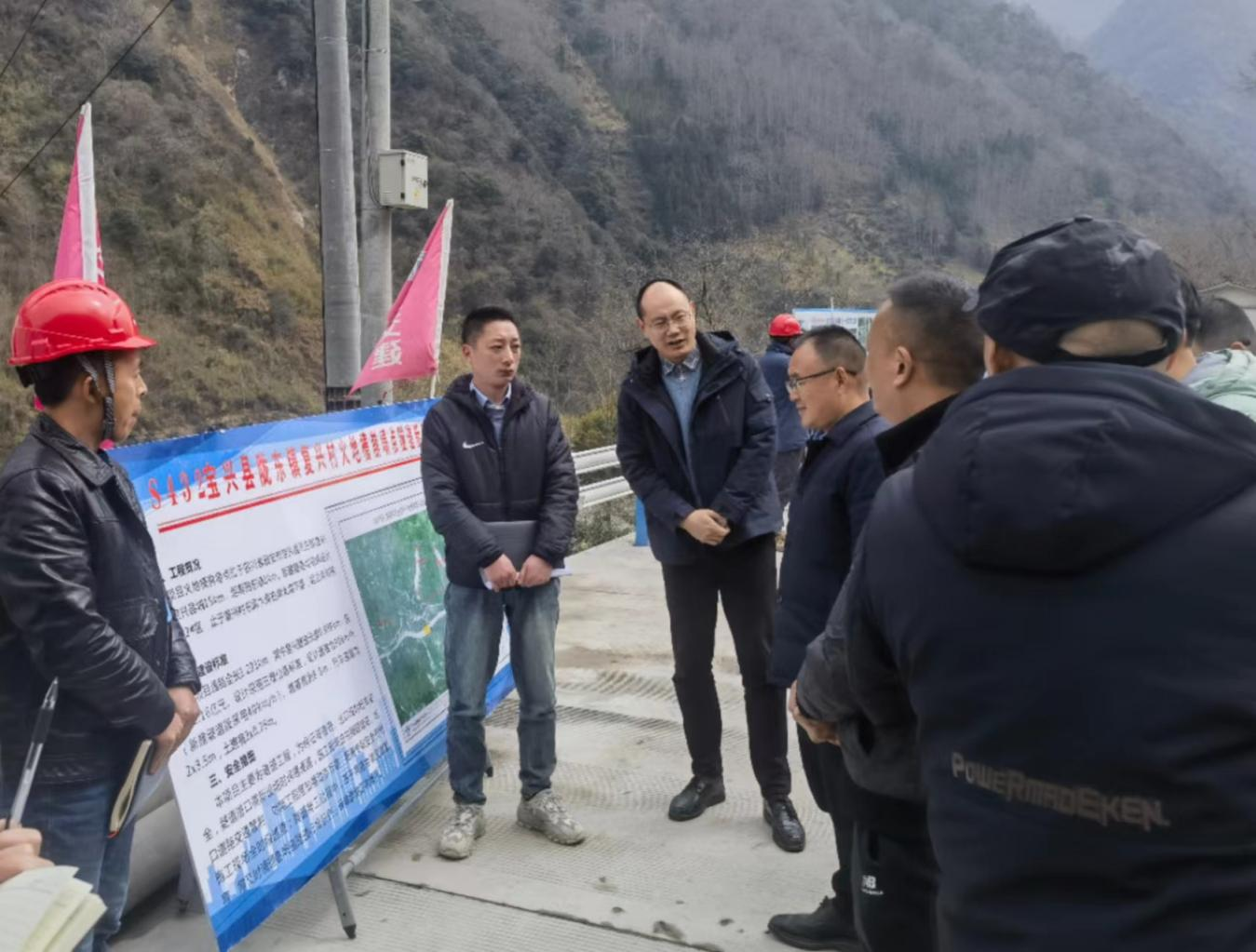 3月8日,市政府副市長鄭胡勇帶隊督查2022年“6.1”地震災后重建火地槽崩塌點復興隧道項目森林防火安全生產工作,寶興縣委有關領導,雅安交建集團路橋公司主要負責同志等陪同檢查。