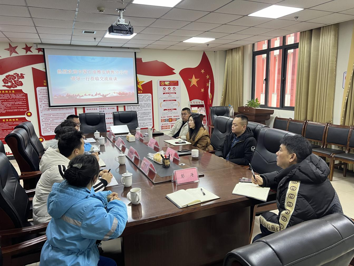 3月6日,中國石油雅安銷售分公司雨城片區(qū)副經(jīng)理劉國毅一行赴交建集團(tuán)建材公司,就石油貿(mào)易業(yè)務(wù)合作事宜進(jìn)行交流座談。建材公司董事長李波,總經(jīng)理李巧頔,副總經(jīng)理楊川參加座談。