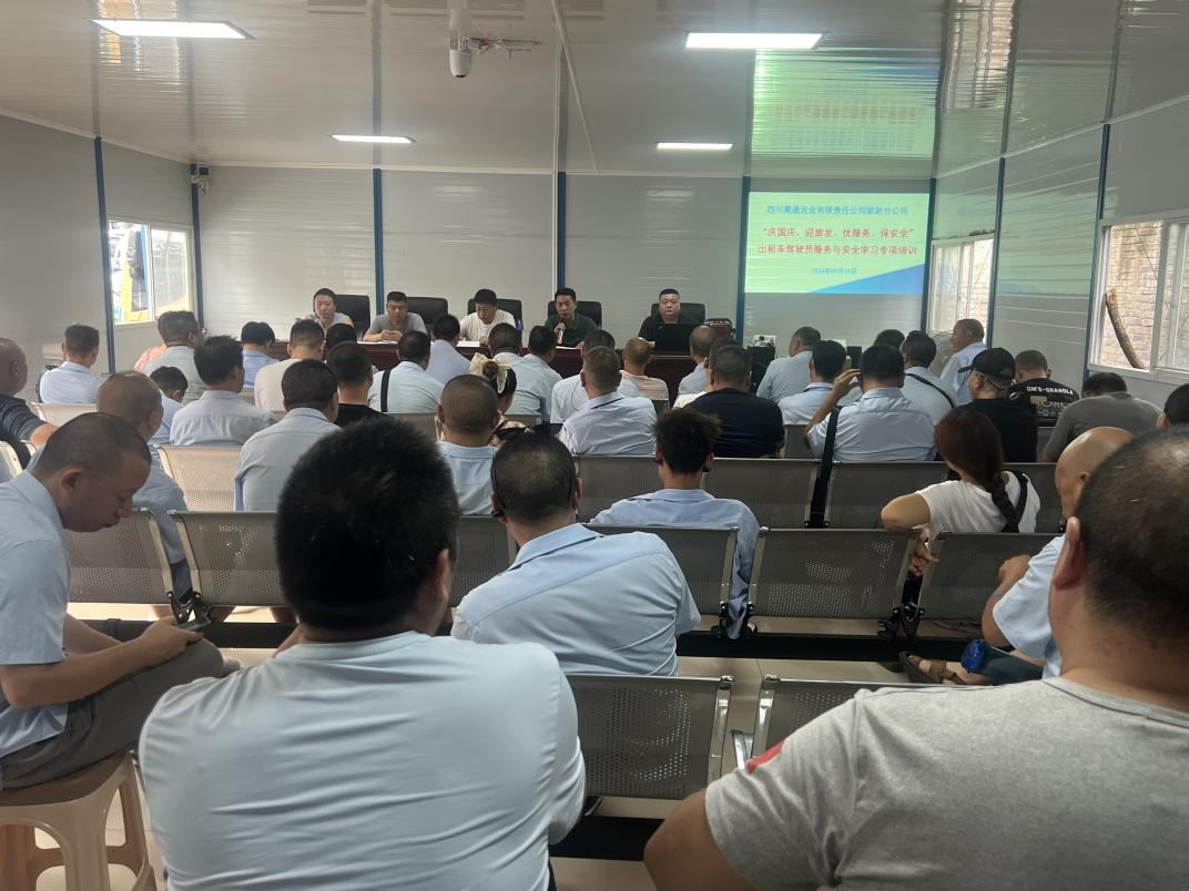 為迎接即將到來(lái)的2024年四川省文化和旅游發(fā)展大會(huì)及國(guó)慶節(jié)假期,進(jìn)一步提高蜀通旅分司客運(yùn)駕駛員的安全營(yíng)運(yùn)意識(shí)、業(yè)務(wù)素養(yǎng)和服務(wù)水平,更好保障游客出行需求,9月20日,蜀通旅分司組織全體客運(yùn)駕駛員開(kāi)展“慶國(guó)慶、迎旅發(fā)、優(yōu)服務(wù)、保安全”服務(wù)與安全專(zhuān)項(xiàng)培訓(xùn)。