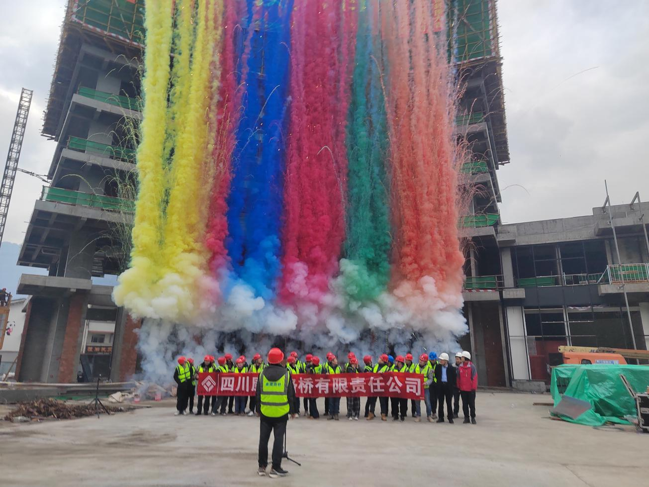 寶興縣靈關(guān)客運(yùn)中心暨綜合停車場建設(shè)項目建筑面積約為1萬平方米,配套用房建筑高度約50米,地下1層,地上11層。自2024年3月開工以來,路橋公司始終堅持“施工方案先行,安全質(zhì)量齊舉,精心精細(xì)施工”的管理原則,踐行“無揚(yáng)塵、無污染、無擾民、低噪音、無環(huán)保投訴”的綠色安全施工理念,調(diào)集優(yōu)質(zhì)資源,搶抓施工進(jìn)度。最終,在項目全員的共同努力奮斗下,順利完成了寶興縣靈關(guān)客運(yùn)中心暨綜合停車場建設(shè)項目主體結(jié)構(gòu)施工節(jié)點,喜封金頂。