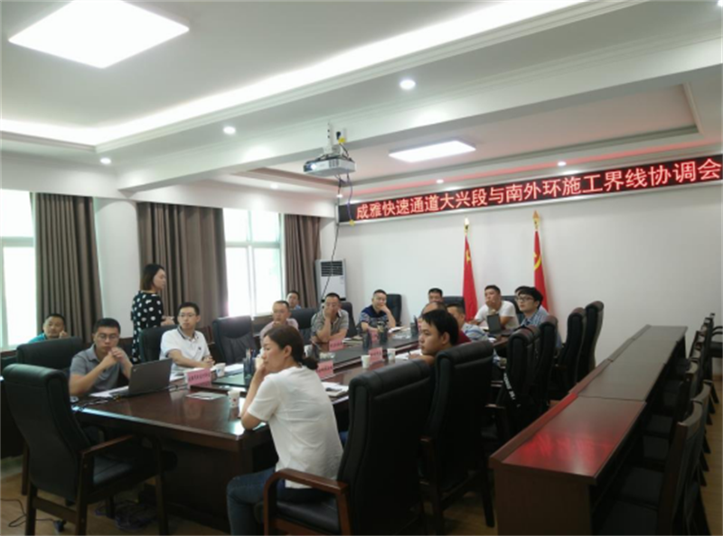 2018年6月20下午,市住建局、市交通局組織成雅快速通道新建項目和南外環(huán)建設(shè)項目兩個項目業(yè)主單位 、設(shè)計單位、監(jiān)理單位、施工單位在交建集團召開協(xié)調(diào)會,協(xié)商解決成雅快速通道大興段與南外環(huán)設(shè)計方案對接問題。
