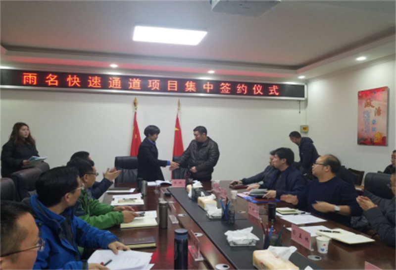 1月23日,雨名快速通道項目集中簽約儀式在雅安交建集團四樓會議室舉行。雅安市交建集團、四川省公路工程監(jiān)理事務所、四川瑞通工程建設(shè)集團有限公司、山東黃河工程集團有限公司將共同攜手,加快建設(shè)雨名快速通道,加速我市三區(qū)同城化發(fā)展步伐,共同打造品質(zhì)工程。
