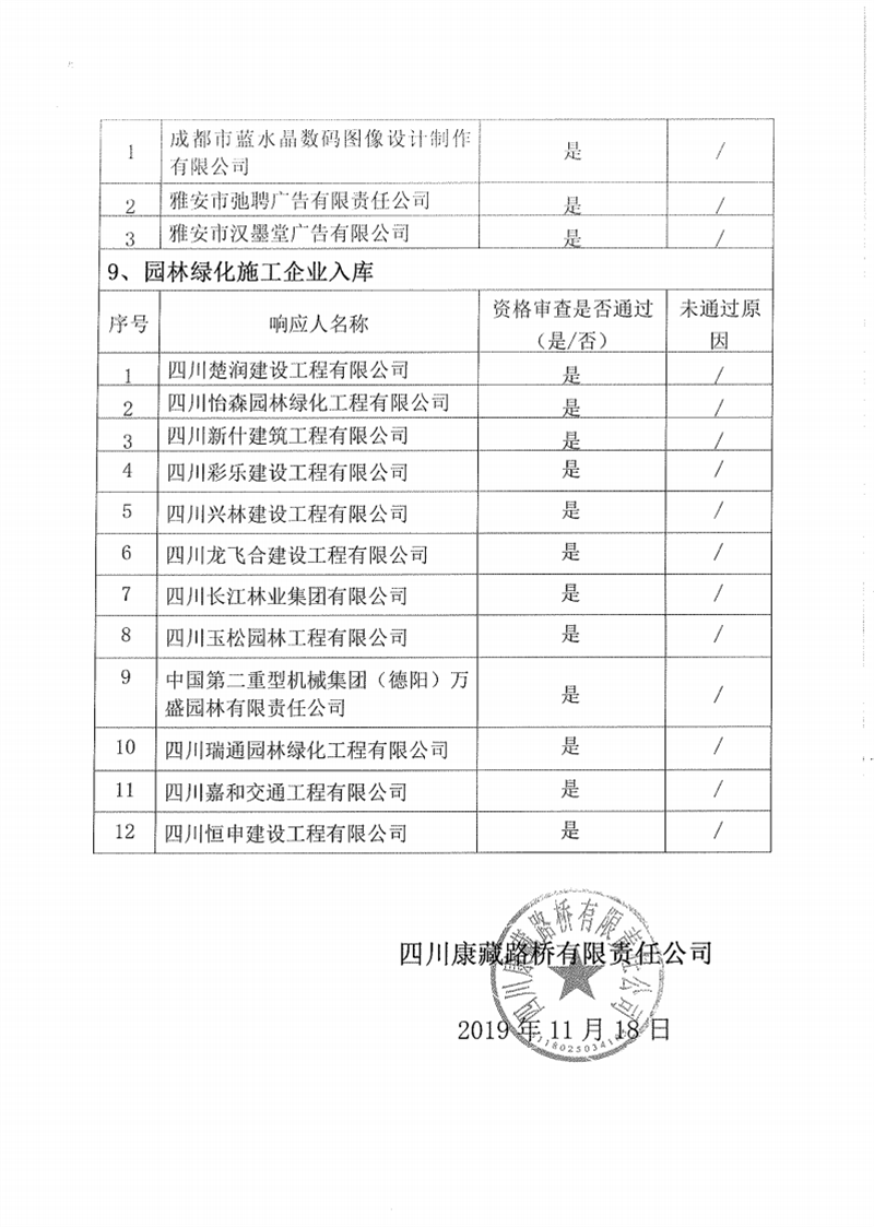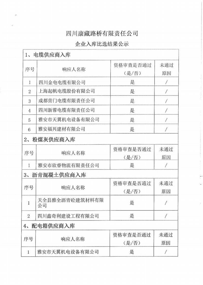 四川康藏路橋有限責任公司企業(yè)入庫比選結(jié)果公示