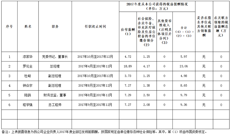 雅安市交通建設(shè)(集團)有限責任公司企業(yè)負責人2017年度薪酬情況公示表