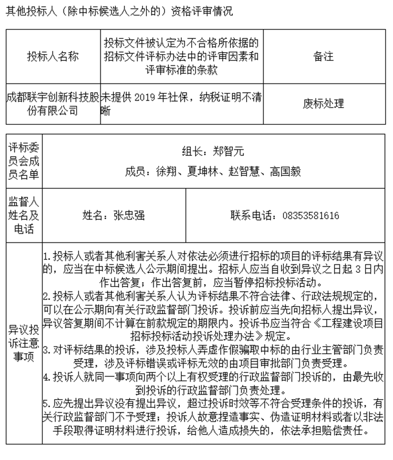 雅安交建集團信息化建設項目競爭性談判評標結果公示