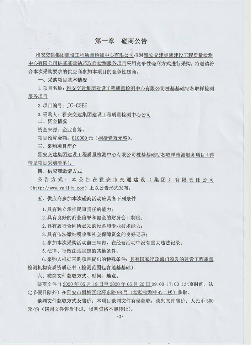 雅安交建集團(tuán)建設(shè)工程質(zhì)量檢測中心有限公司樁基基礎(chǔ)鉆芯取樣檢測服務(wù)項(xiàng)目競爭性磋商公告