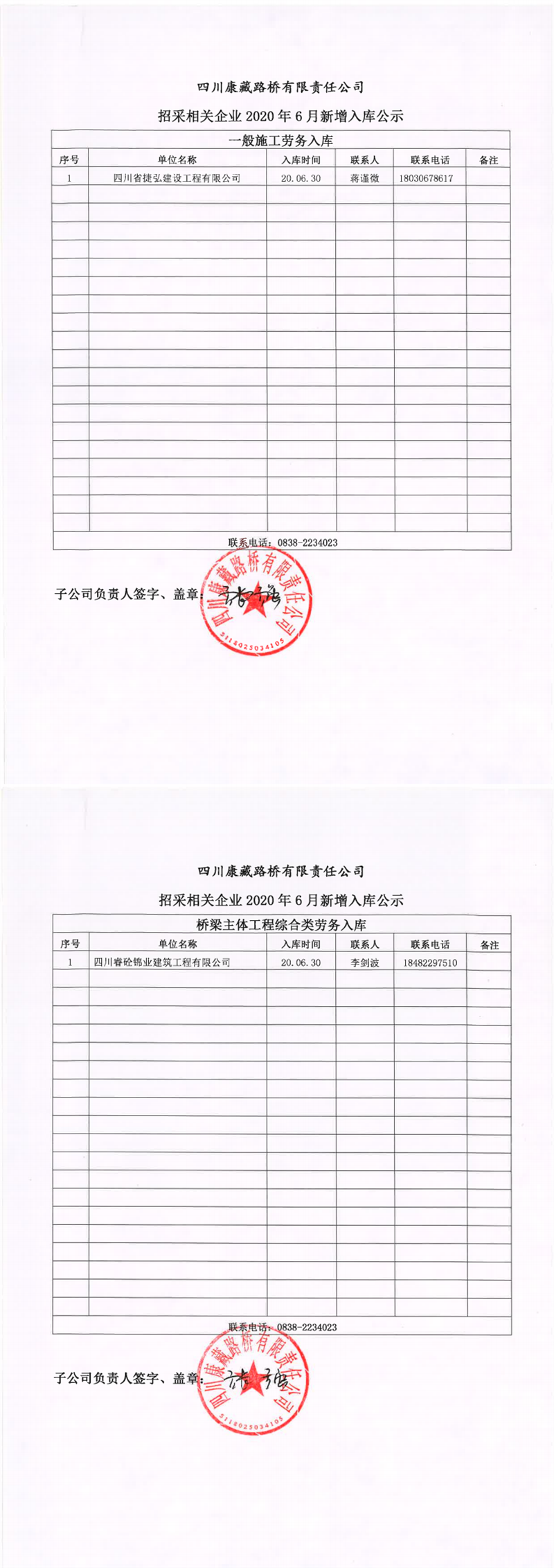 四川康藏路橋有限責(zé)任公司招采相關(guān)企業(yè)2020年6月新增入庫(kù)公示