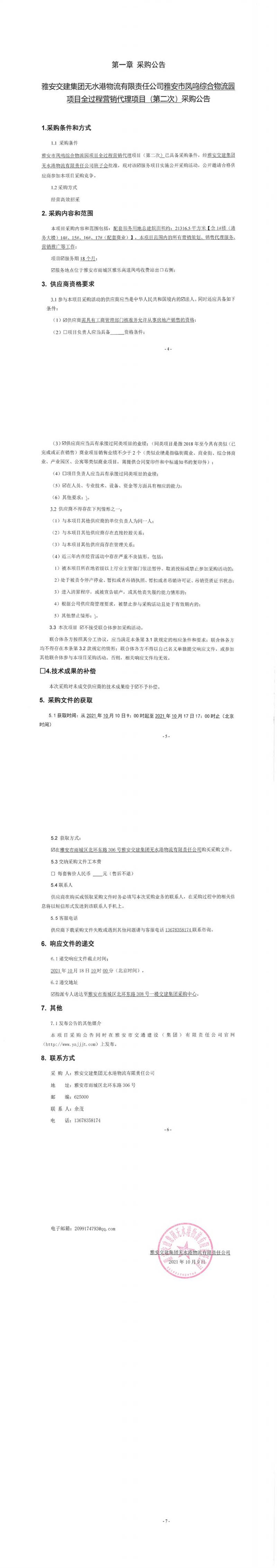 雅安交建集團無水港物流有限責任公司雅安市鳳鳴綜合物流園項目全過程營銷代理項目(第二次)采購公告