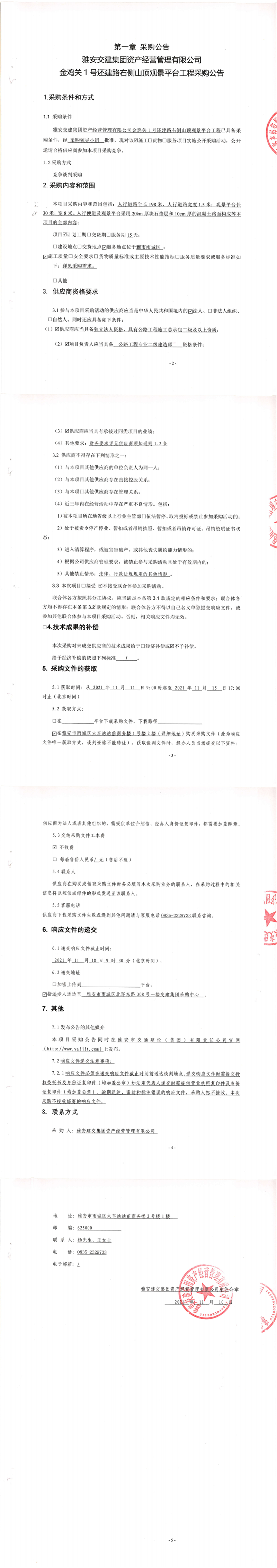 雅安交建集團資產經營管理有限公司金雞關1號還建路右側山頂觀景平臺工程采購公告