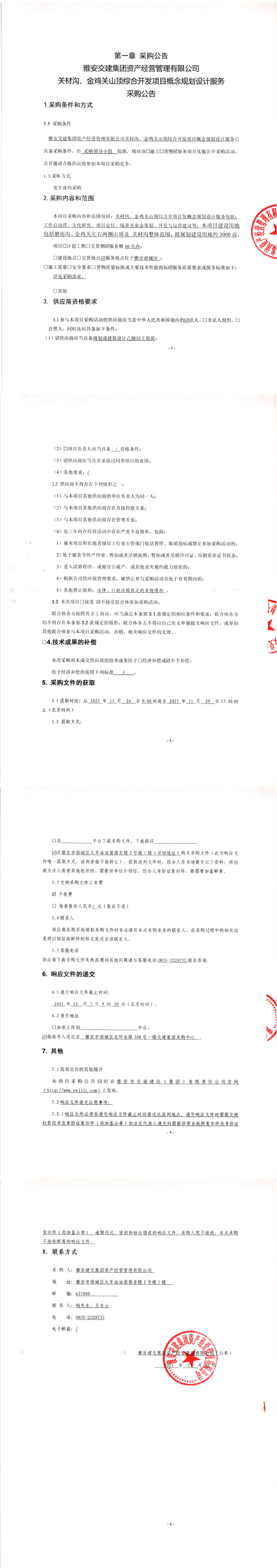 雅安交建集團(tuán)資產(chǎn)經(jīng)營(yíng)管理有限公司關(guān)材溝、金雞關(guān)山頂綜合開發(fā)項(xiàng)目概念規(guī)劃設(shè)計(jì)服務(wù)采購(gòu)公告