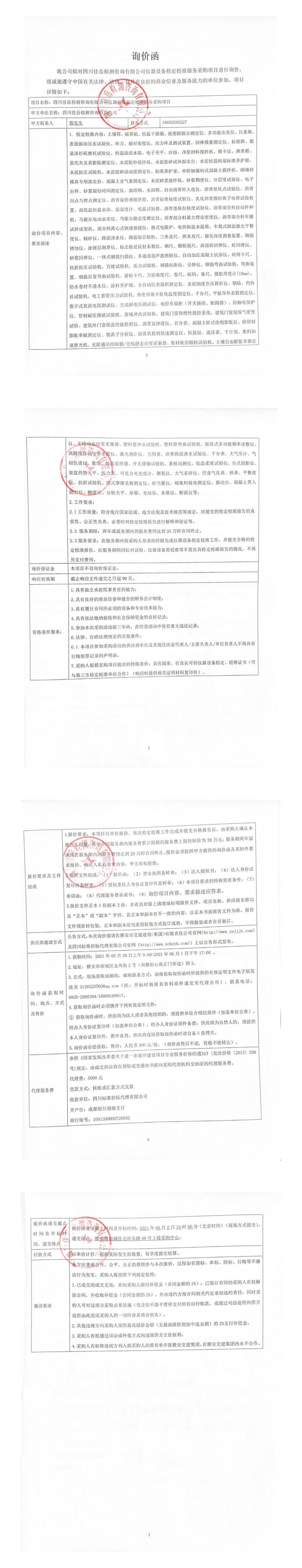 四川佳岳檢測(cè)咨詢有限公司儀器設(shè)備檢定校準(zhǔn)服務(wù)采購(gòu)詢價(jià)公告