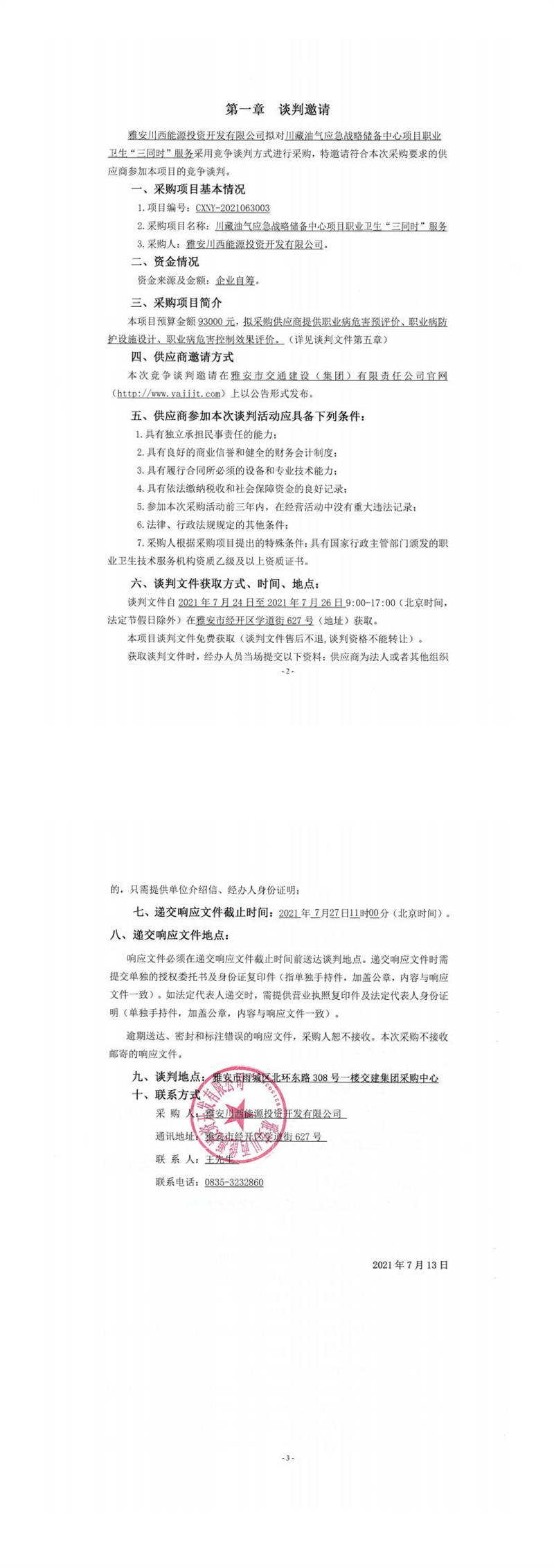 雅安川西能源投資開發(fā)有限公司川藏油氣應(yīng)急戰(zhàn)略儲備中心項目職業(yè)衛(wèi)生“三同時”服務(wù)競爭談判公告