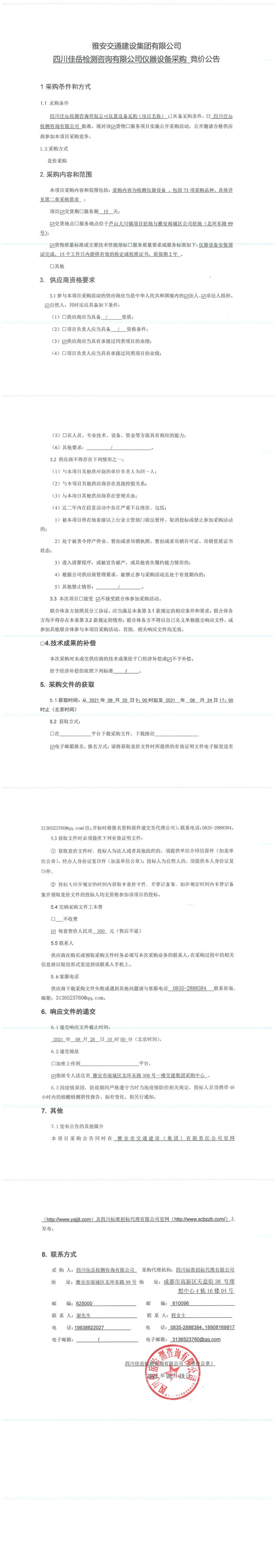 雅安交通建設(shè)集團(tuán)有限公司四川佳岳檢測(cè)咨詢有限公司儀器設(shè)備采購(gòu)競(jìng)價(jià)公告