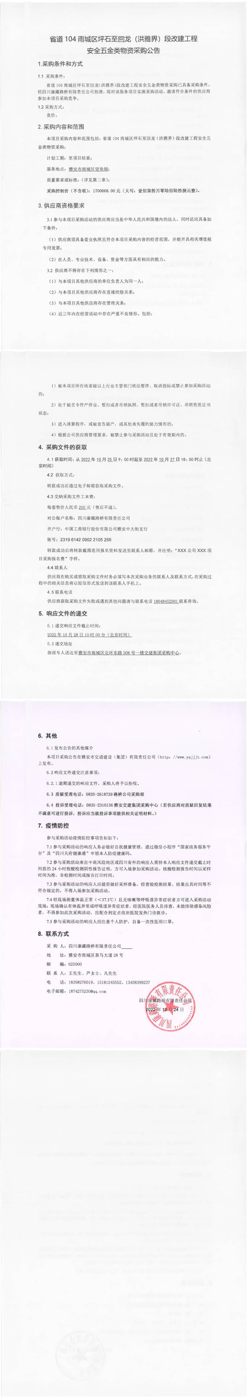 四川康藏路橋有限責(zé)任公司省道104雨城區(qū)坪石至回龍(洪雅界)段改建工程安全五金類(lèi)物資采購(gòu)公告