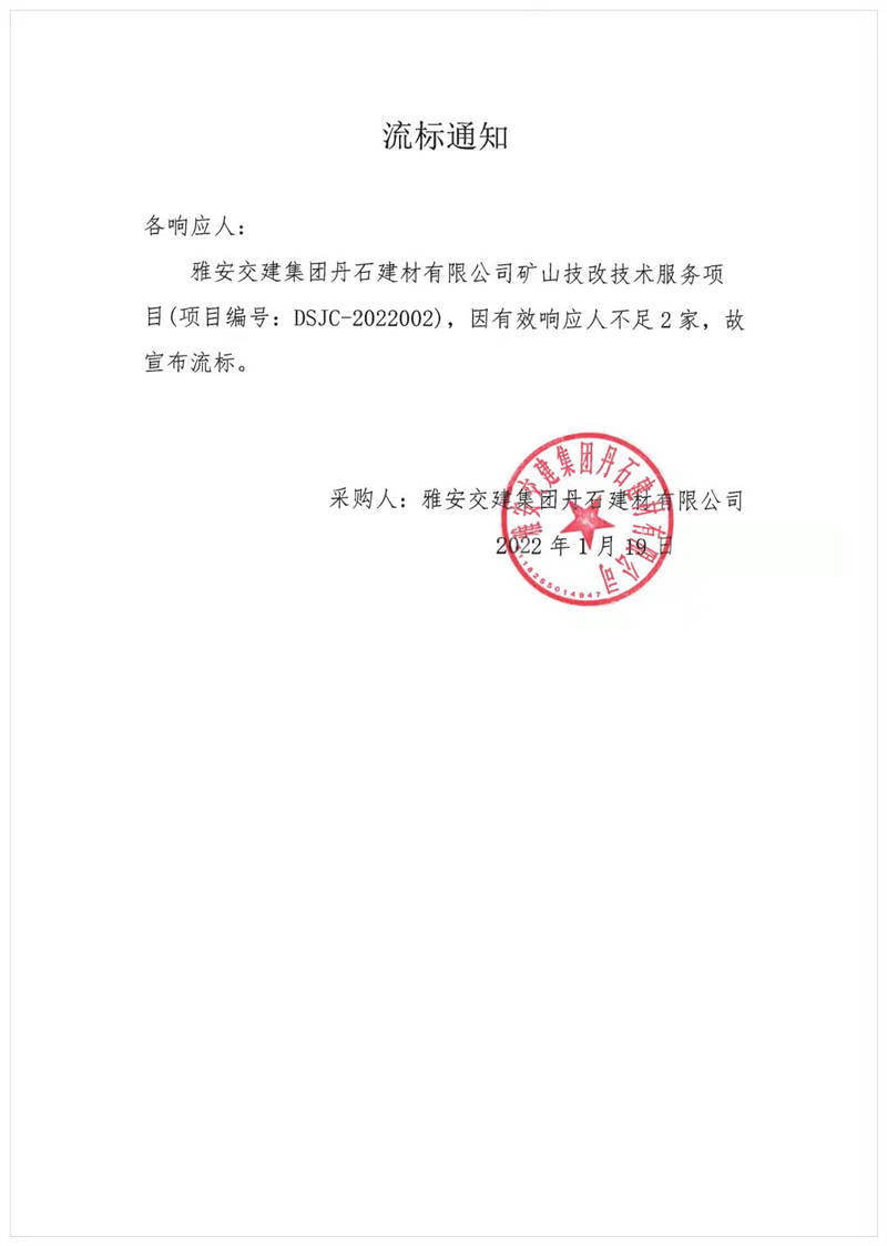 雅安交建集團丹石建材有限公司礦山技改技術服務項目流標通知