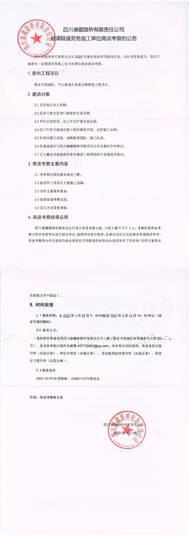 四川康藏路橋有限責(zé)任公司邀請隧道勞務(wù)施工單位商談考察的公告