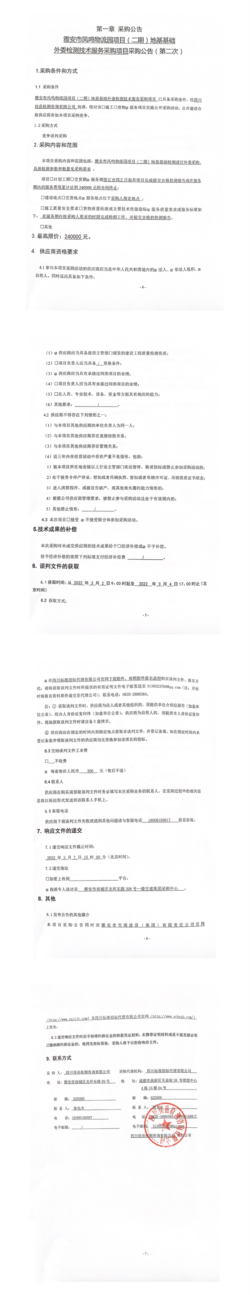 四川佳岳檢測(cè)咨詢有限公司雅安市鳳鳴物流園項(xiàng)目(二期)地基基礎(chǔ)外委檢測(cè)技術(shù)服務(wù)采購項(xiàng)目采購公告(第二次)