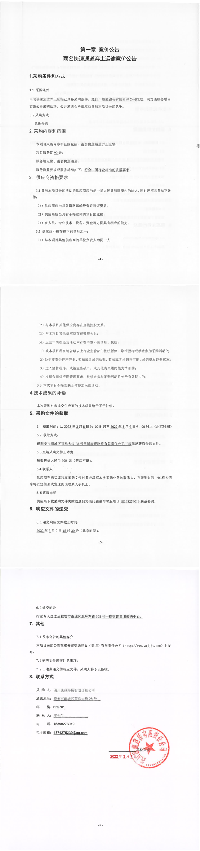 四川康藏路橋有限責(zé)任公司雨名快速通道棄土運(yùn)輸競價(jià)公告