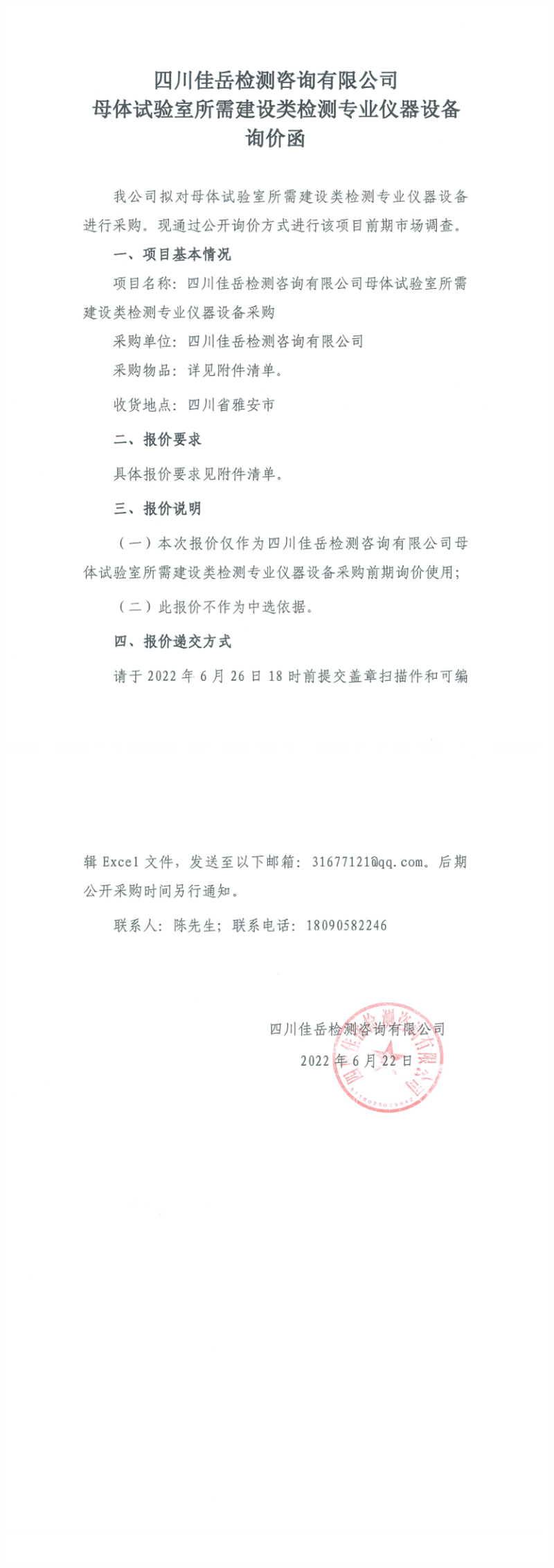 四川佳岳檢測(cè)咨詢(xún)有限公司母體試驗(yàn)室所需建設(shè)類(lèi)檢測(cè)專(zhuān)業(yè)儀器設(shè)備詢(xún)價(jià)函