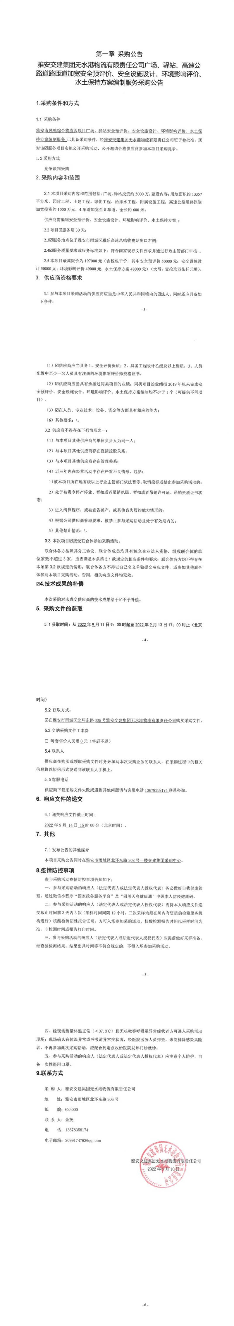 雅安交建集團(tuán)無水港物流有限責(zé)任公司廣場、驛站、高速公路道路匝道加寬安全預(yù)評價、安全設(shè)施設(shè)計、環(huán)境影響評價、水土保持方案編制服務(wù)采購公告