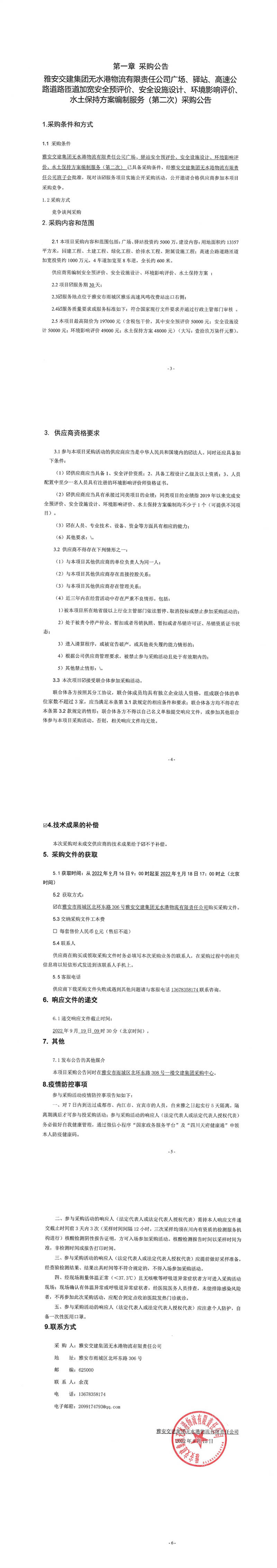 雅安交建集團(tuán)無水港物流有限責(zé)任公司廣場(chǎng)、驛站、高速公路道路匝道加寬安全預(yù)評(píng)價(jià)、安全設(shè)施設(shè)計(jì)、環(huán)境影響評(píng)價(jià)、水土保持方案編制服務(wù)(第二次)采購公告