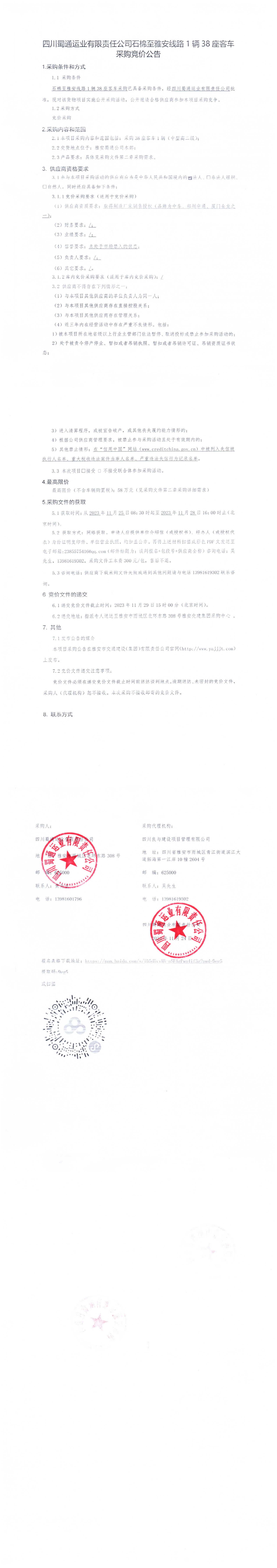 四川蜀通運(yùn)業(yè)有限責(zé)任公司石棉縣至雅安線路1輛38座客車采購競價公告