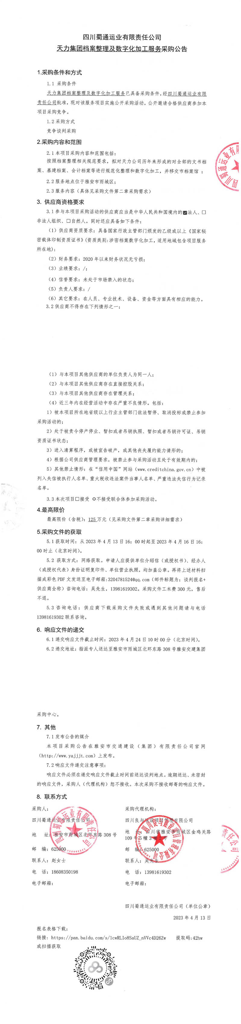 四川蜀通運業(yè)有限責任公司天力集團檔案整理及數(shù)字化加工服務采購公告