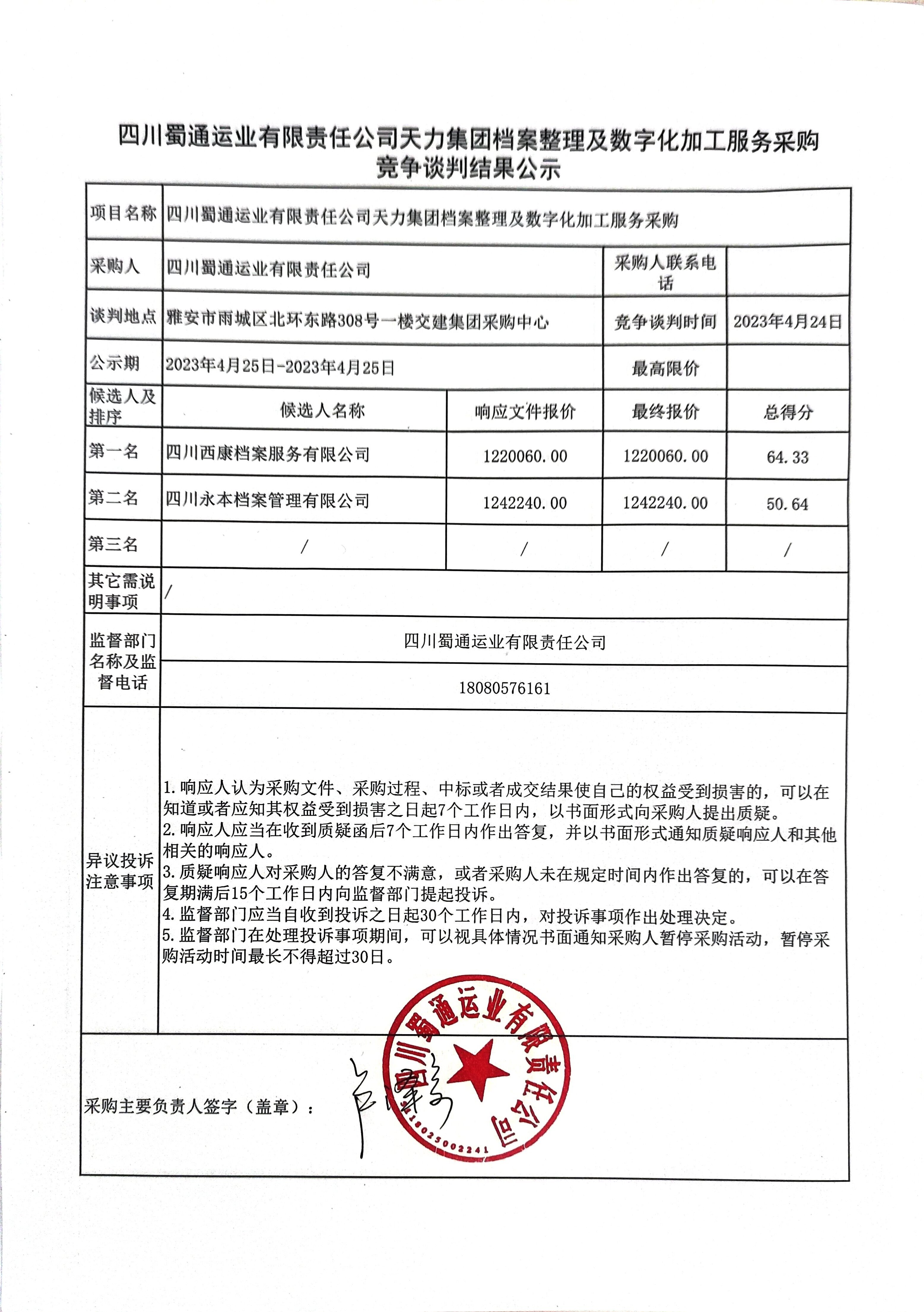 四川蜀通運(yùn)業(yè)有限責(zé)任公司天力集團(tuán)檔案整理及數(shù)字化加工服務(wù)采購競(jìng)爭(zhēng)談判結(jié)果公示