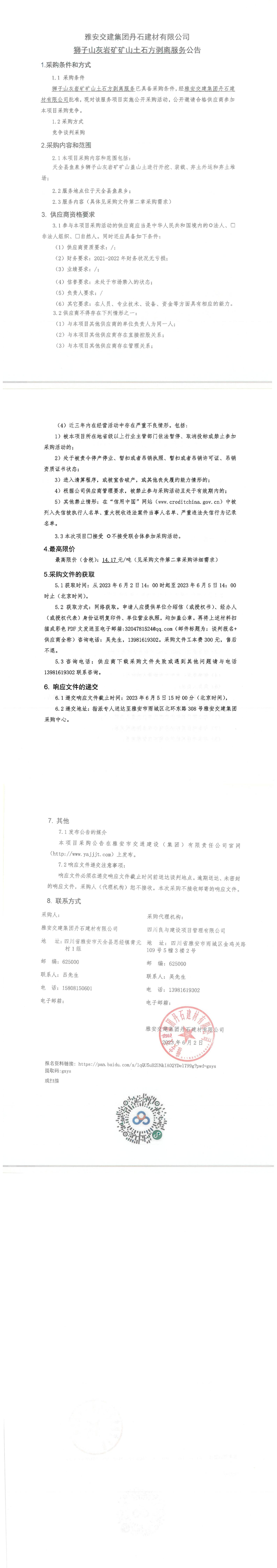 雅安交建集團丹石建材有限公司獅子山灰?guī)r礦礦山土石方剝離服務(wù)公告