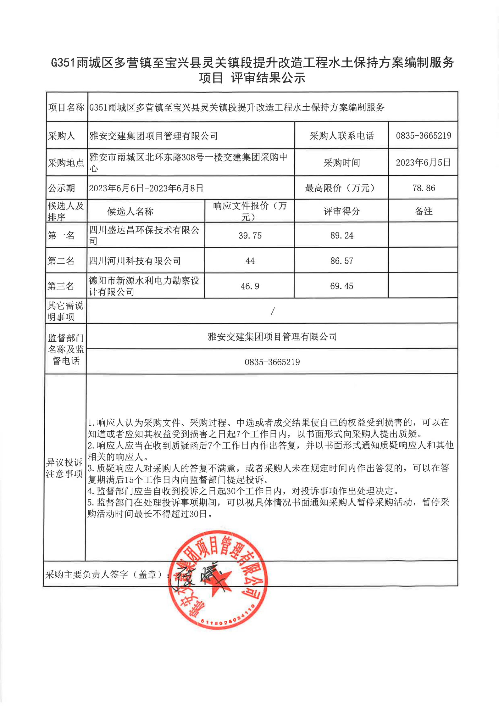 雅安交建集團(tuán)項(xiàng)目管理有限公司G351雨城區(qū)多營鎮(zhèn)至寶興縣靈關(guān)鎮(zhèn)段提升改造工程水土保持方案編制服務(wù)項(xiàng)目評(píng)審結(jié)果公示