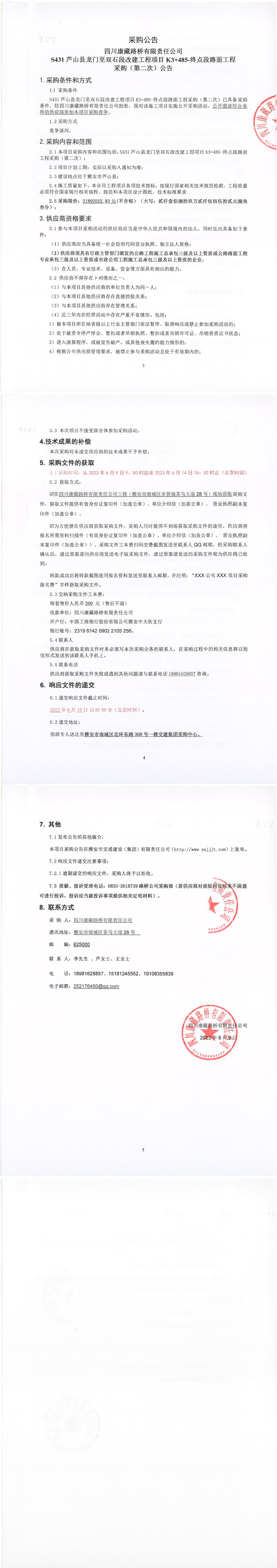 四川康藏路橋有限責(zé)任公司S431蘆山縣龍門至雙石段改建工程項目K3+485-終點(diǎn)段路面工程采購(第二次)公告