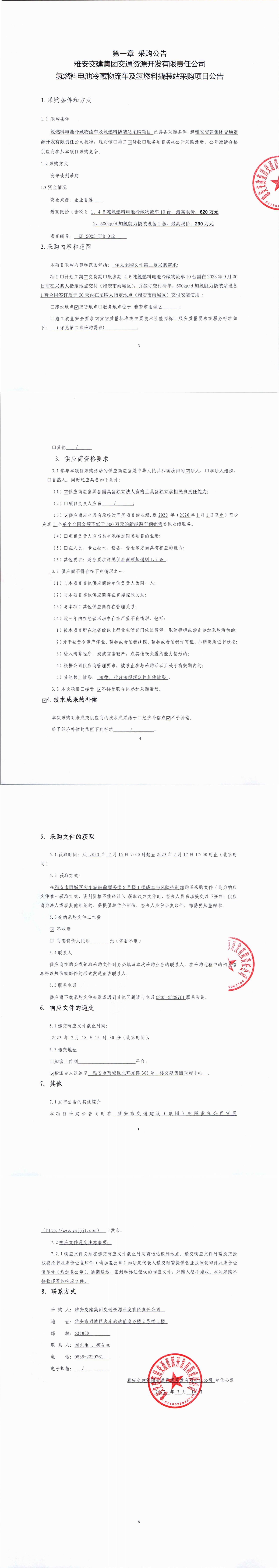 雅安交建集團(tuán)交通資源開發(fā)有限責(zé)任公司氫燃料電池冷藏物流車及氫燃料撬裝站采購項目公告