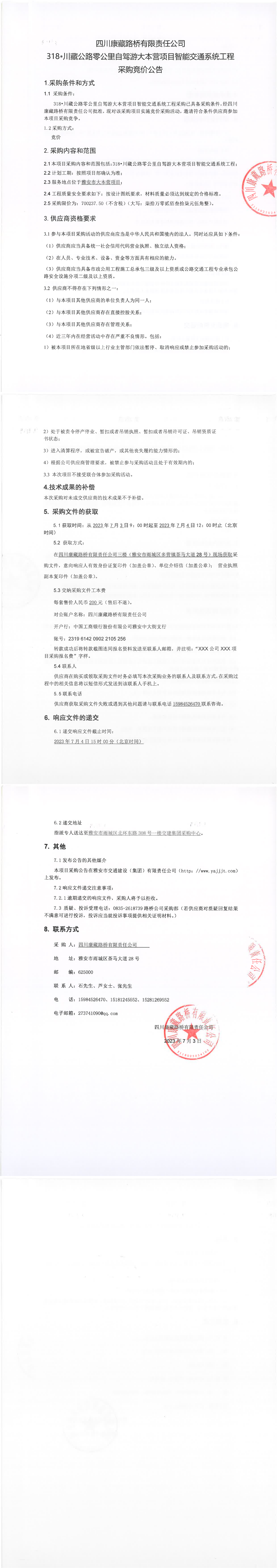 四川康藏路橋有限責(zé)任公司318·川藏公路零公里自駕游大本營項(xiàng)目智能交通系統(tǒng)工程采購競價公告