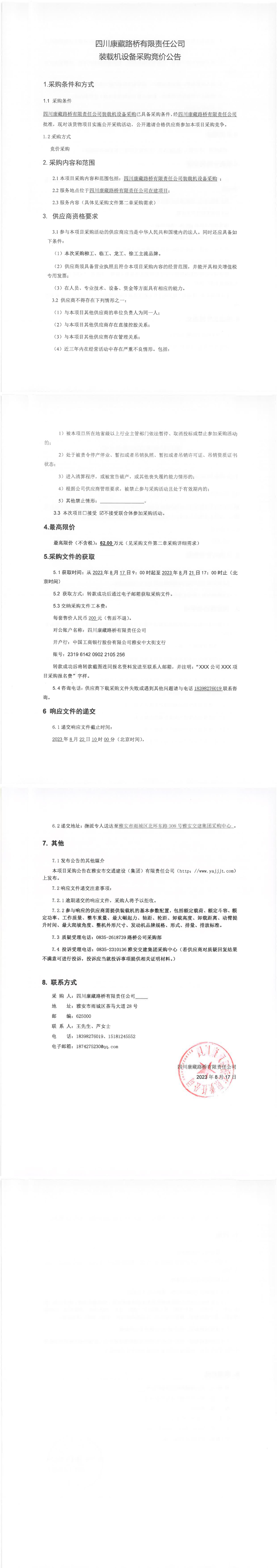 四川康藏路橋有限責(zé)任公司裝載機(jī)設(shè)備采購(gòu)競(jìng)價(jià)公告