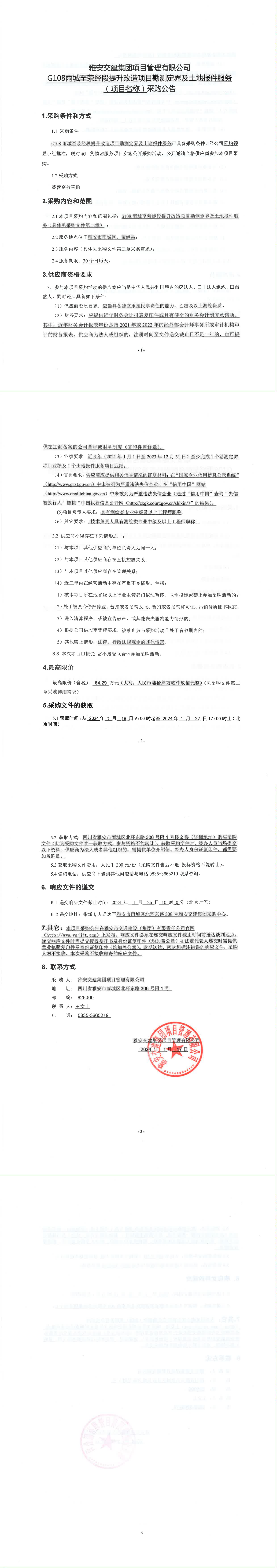 雅安交建集團項目管理有限公司G108雨城至滎經(jīng)段提升改造項目勘測定界及土地報件服務(項目名稱)采購公告