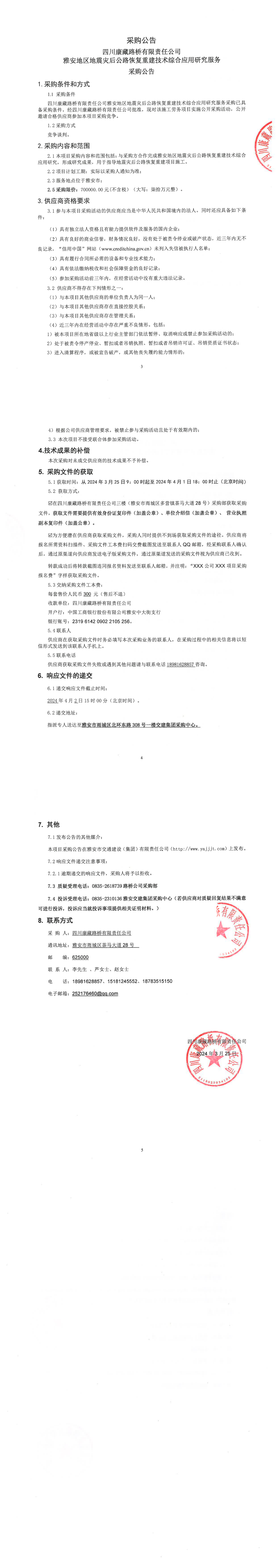 四川康藏路橋有限責任公司雅安地區(qū)地震災后公路恢復重建技術(shù)綜合應(yīng)用研究服務(wù)采購公告