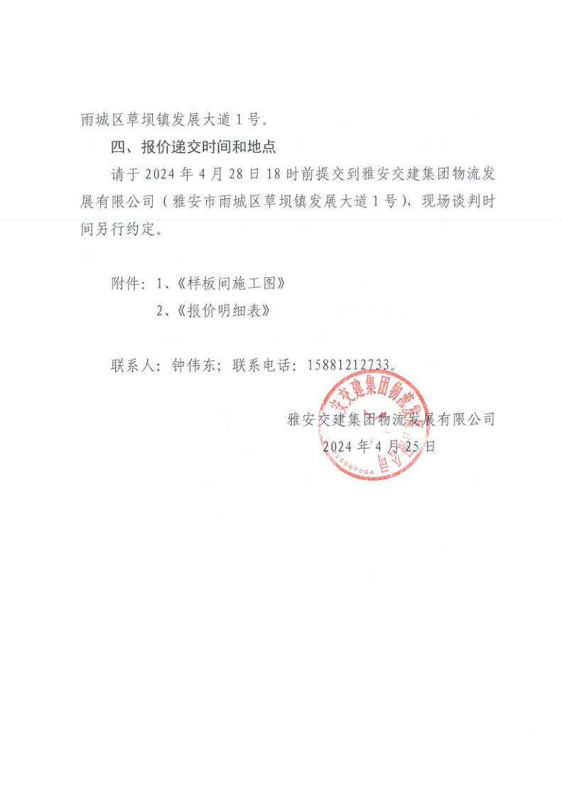 雅安交建集團物流發(fā)展有限公司雅安市鳳鳴綜合物流園項目供應(yīng)鏈管理中心樣板間軟裝方案設(shè)計和清單編制服務(wù)采購市場調(diào)查詢價函
