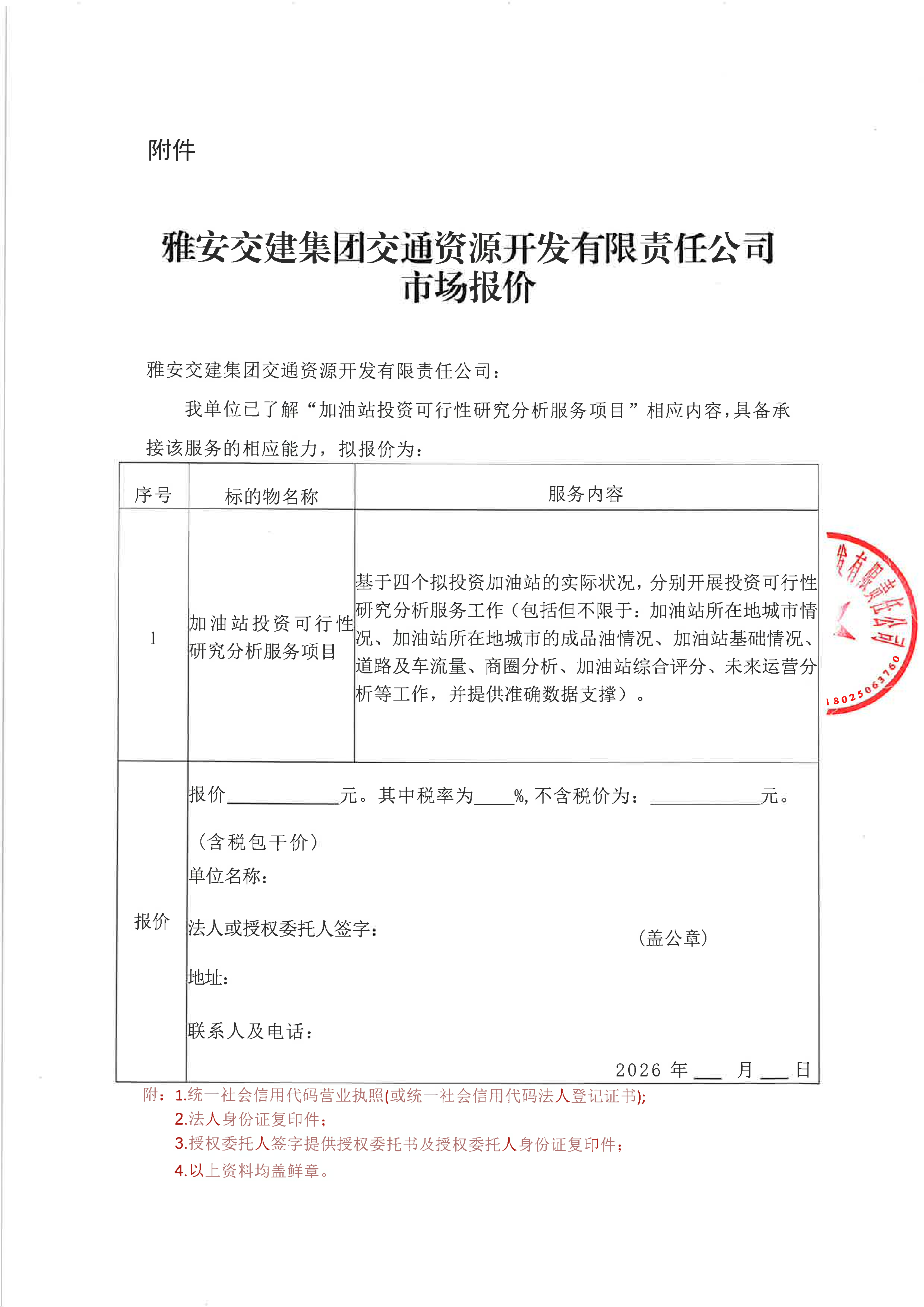 雅安交建集團(tuán)交通資源開(kāi)發(fā)有限責(zé)任公司加油站投資可行性研究分析服務(wù)項(xiàng)目市場(chǎng)調(diào)查公告
