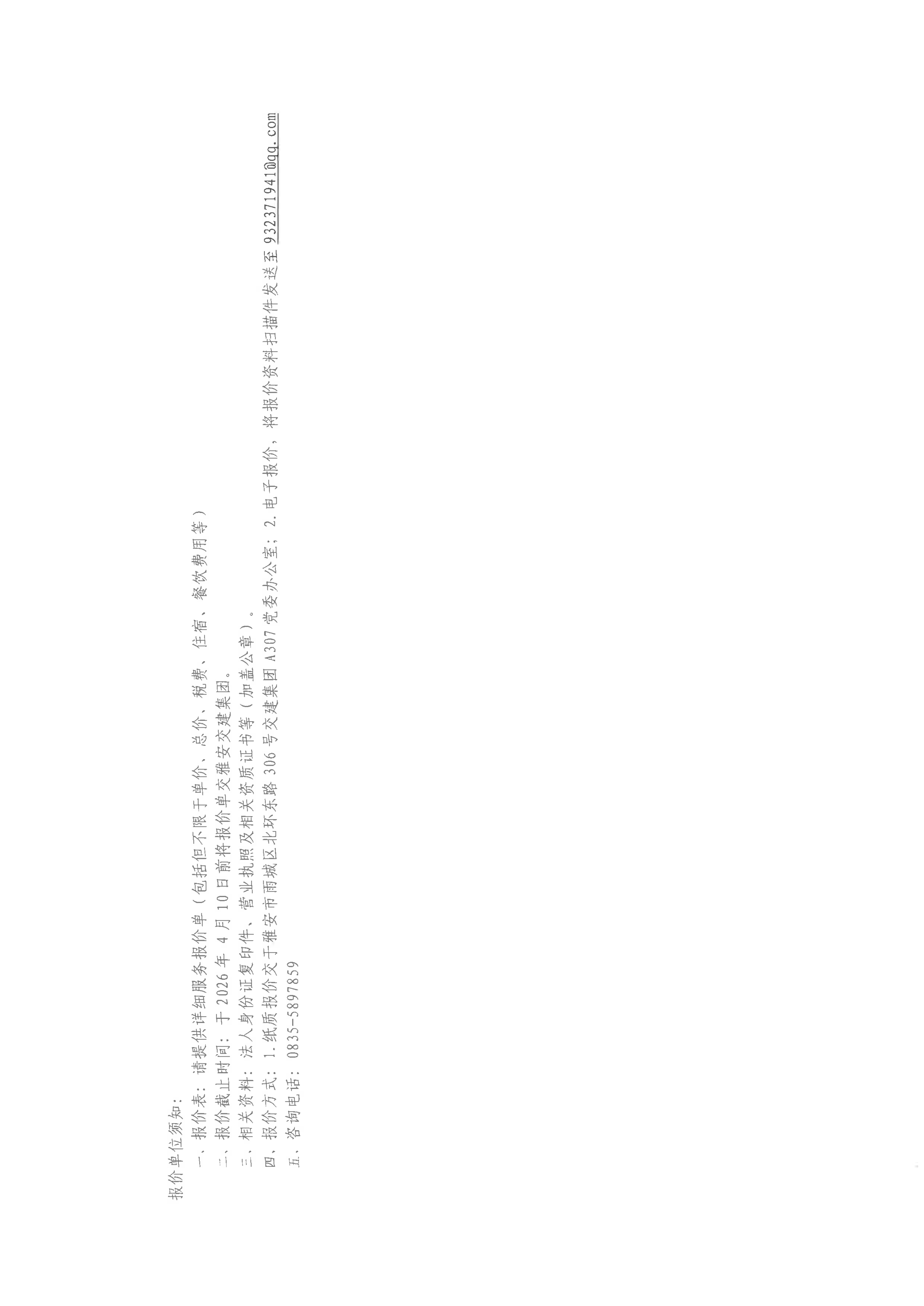 關(guān)于雅安市交通建設(shè)(集團(tuán))有限責(zé)任公司定制化信息專報服務(wù)采購限價的詢價函