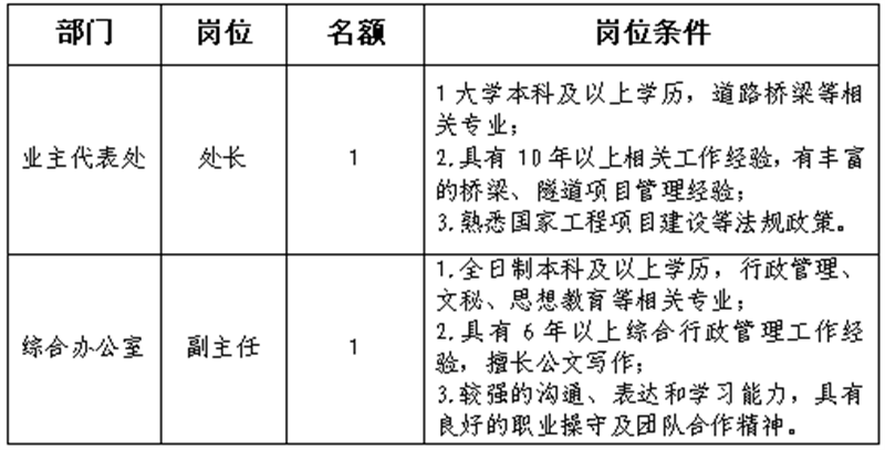 根據(jù)發(fā)展需要,決定面向社會(huì)公開(kāi)招聘雅安市交通建設(shè)(集團(tuán))有限責(zé)任公司(以下簡(jiǎn)稱(chēng)“雅安交建集團(tuán)”)所屬子公司相關(guān)人員2名,現(xiàn)將有關(guān)事項(xiàng)公告如下: