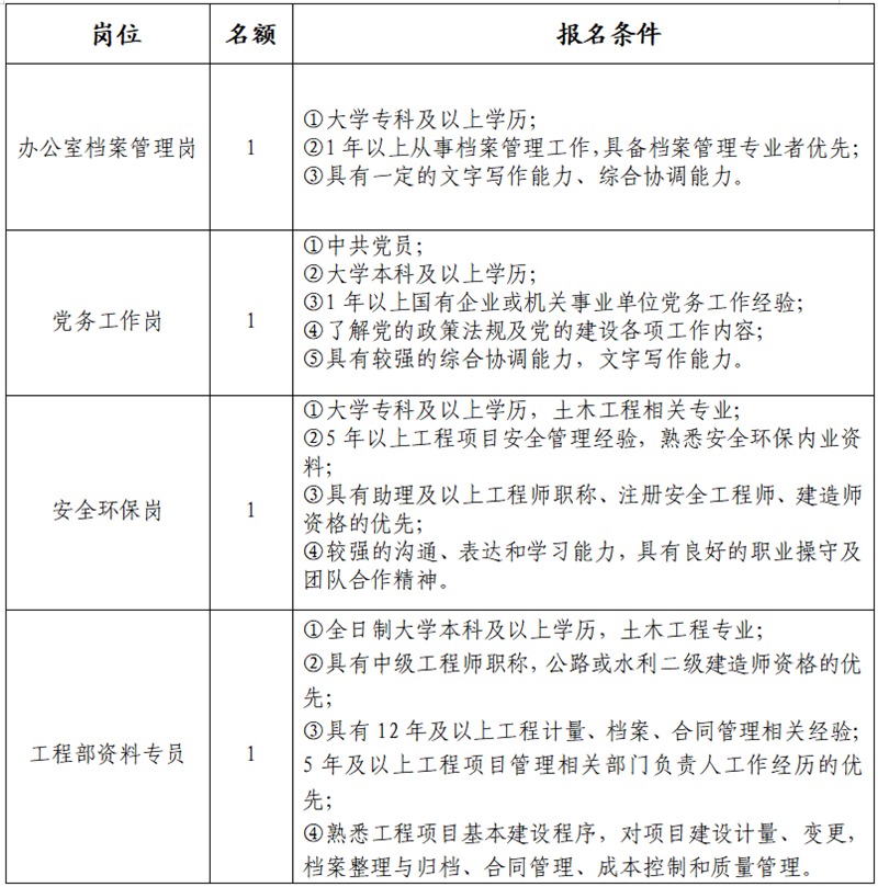 雅安交建集團(tuán)資產(chǎn)經(jīng)營(yíng)管理有限公司是雅安市重點(diǎn)國(guó)有企業(yè)雅安市交建集團(tuán)下屬子公司,主要從事企業(yè)資產(chǎn)經(jīng)營(yíng)管理;項(xiàng)目投資;土地整理等業(yè)務(wù)。根據(jù)公司發(fā)展需要,決定面向社會(huì)公開(kāi)招聘4名工作人員,現(xiàn)將有關(guān)事項(xiàng)公告如下: