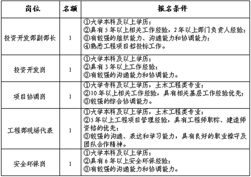 雅安交建集團(tuán)資產(chǎn)經(jīng)營管理有限公司是雅安市重點(diǎn)國有企業(yè)雅安市交建集團(tuán)下屬子公司,主要從事企業(yè)資產(chǎn)經(jīng)營管理;項目投資;土地整理等業(yè)務(wù)。根據(jù)公司發(fā)展需要,決定面向社會公開招聘5名工作人員,現(xiàn)將有關(guān)事項公告如下:
