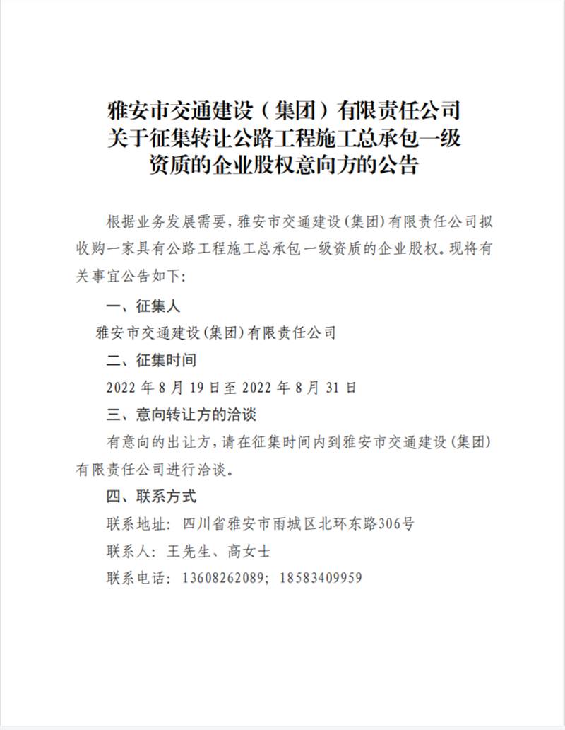 êPÓÚÕ÷¼¯ÞD(zhu¨£n)׌¹«Â·¹¤³ÌÊ©¹¤¿‚³Ð°üÒ»¼‰ÙYÙ|(zh¨¬)µÄÆó˜I(y¨¨)¹É™àÒâÏòºÏ×÷·½µÄ¹«¸æ