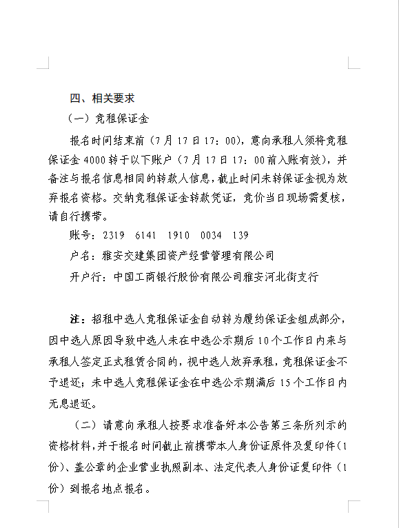 雅安交建集團(tuán)資產(chǎn)經(jīng)營(yíng)管理有限公司 雅安市雨城區(qū)大興鎮(zhèn)水津關(guān)堆料場(chǎng)龍溪村四組和八組部分閑置臨時(shí)用地招租公告附件
