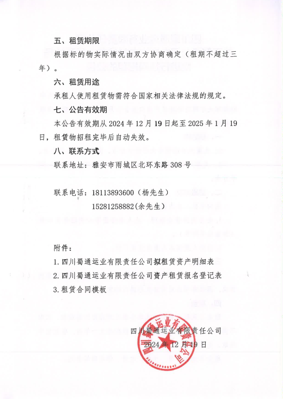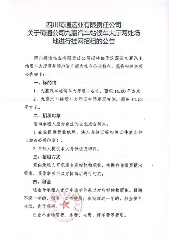 四川蜀通運(yùn)業(yè)郵箱責(zé)任公司關(guān)于蜀通公司九襄汽車站候車大廳兩處場(chǎng)地進(jìn)行掛網(wǎng)招租的公告附件