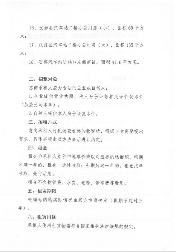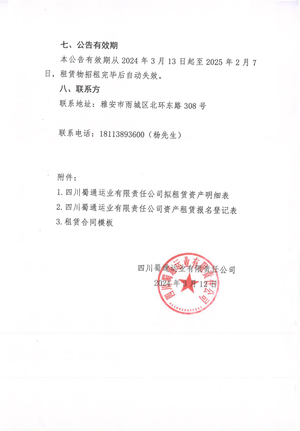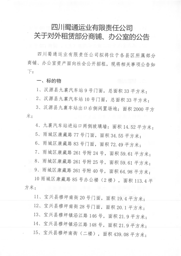 四川蜀通運(yùn)業(yè)有限責(zé)任公司關(guān)于對(duì)外租賃部分門(mén)面、辦公室資產(chǎn)的公告附件